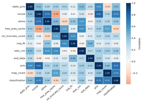 After data normalization, the process of selecting features is carried out to isolate the most relevant variables within the refined dataset . This step enhances model performance by reducing dimensionality, eliminating redundant features, and improving interpretability. In this study, Mutual Information (MI) is used as the feature selection method due to its effectiveness in measuring the dependency between individual features and the target labels.