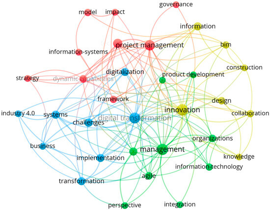 Despite growing scholarly attention, the intersection of project management and digital transformation remains conceptually fragmented and under-theorised [27,28,29,30]. Recent bibliometric work by Yordanova [31] provides a high-level mapping of the field, identifying clusters such as technological innovation, managerial adaptation, and sector-specific application. However, deeper conceptual insights are still needed to explain how digital transformation is organised, managed, and governed in project-based settings.