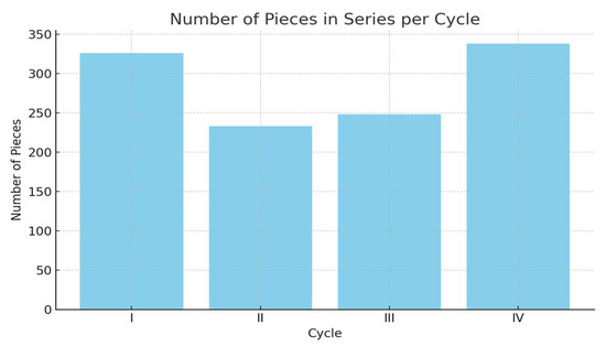 This bar chart displays the number of pieces produced in each production cycle (Figure 5).