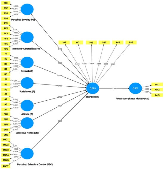 | Intention (Int) | Int1: I am likely to comply with my organization’s information security policies. Int2: It is possible that I will follow information security policies to help protect the organization’s information systems. Int3: I am certain that I will act in accordance with the organization’s information security policies. Int4: I intend to comply with the requirements of my organization’s Information Security Policy (ISP) in the future. Int5: I intend to safeguard information and technology resources in alignment with my organization’s ISP. Int6: I intend to carry out my assigned responsibilities as outlined in the ISP when using organizational information and technology. | [26,34] |