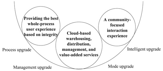 The ecosystem envelope of RRS Logistics is composed of three parts: (1) providing the best whole-process user experience based on integrity; (2) cloud-based warehousing, distribution, management, and value-added services; and (3) a community-focused interaction experience, as shown in Figure 6.