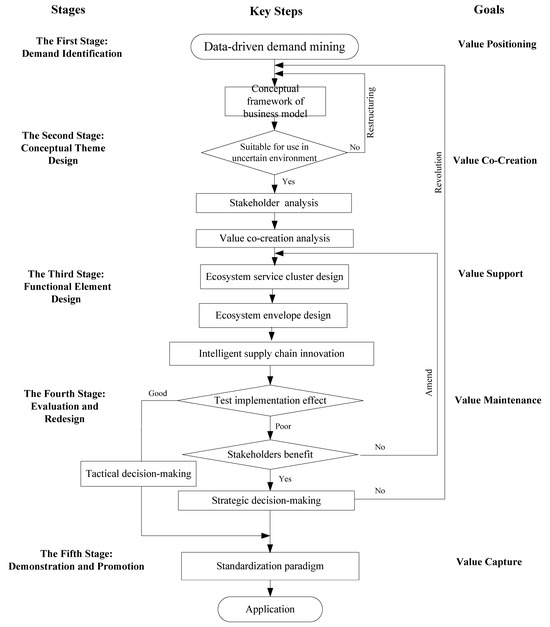 Business models will dynamically change with changes in uncertain internal and external environments. The impacts of uncertain environments and mechanisms determining these should be paid attention to, and the contradiction between long-term goals and short-term benefits at different stages should be gradually mitigated to promote the platform’s rapid growth and sustainable development. This principle is also reflected in the subsequent general flowchart.