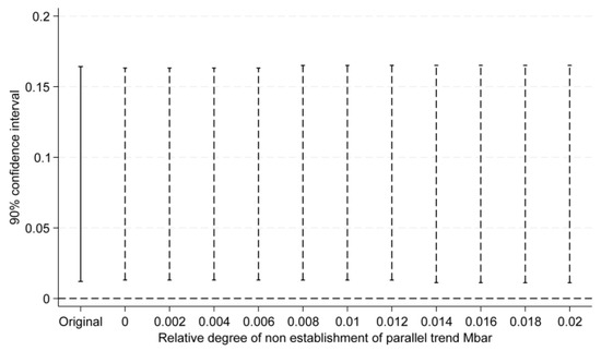 - Rambachan, A.; Roth, J. A More Credible Approach to Parallel Trends. Rev. Econ. Stud. Forthconming 2023, 90, 2555–2591. [Google Scholar] [CrossRef]