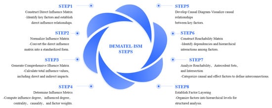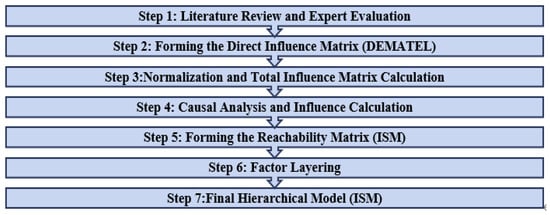 Considering the multi-phased structure and computational intricacy of the DEMATEL-ISM methodology, the comprehensive process diagram is depicted in Figure 2, with an exhaustive breakdown of the procedural stages provided in the subsequent sections.