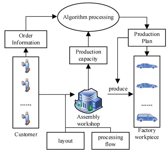 Schematic diagram of the scheduling optimization problem for a mixed-flow assembly line.