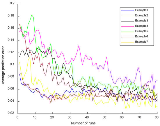In order to verify that the deep reinforcement learning-driven operator designed in this article can effectively and accurately evaluate various states, this paper first ran the RLVNS-NSGA-II 80 times. Since the maximum number of iterations was set to 200 and the number of local searches to 30, each run of the algorithm trained the deep reinforcement learning model for times. Furthermore, this paper recorded the average estimation error of the deep reinforcement learning operator for the State Value during each run, resulting in the convergence graph of prediction errors shown in Figure 6 below.