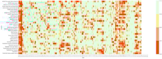 Additional studies have further emphasized the heterogeneity in sector-level responses. Baek et al. (2020) [14] conducted an industry-level volatility analysis using U.S. stock market data and confirmed that COVID-19 shocks led to uneven volatility spikes across sectors, with finance, real estate, and energy among the most adversely affected.