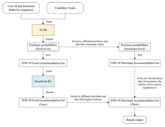 Furthermore, the TLSR model is validated on a real-world food delivery dataset. Through case studies, it is demonstrated that TLSR is capable of learning implicit context-driven patterns. Combined with the reasoning ability of DeepSeek-R1, the model further enhances recommendation quality by reranking based on open knowledge. In addition, an ablation study is conducted to verify the effectiveness of the hybrid fusion strategy employed by TLSR. In summary, the main contributions of this paper are as follows.