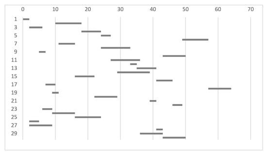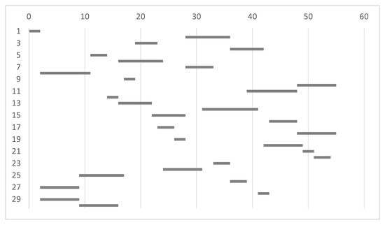 The Gantt chart of the revised plan for the model with the shortest makespan objective is shown in Figure 5 below.