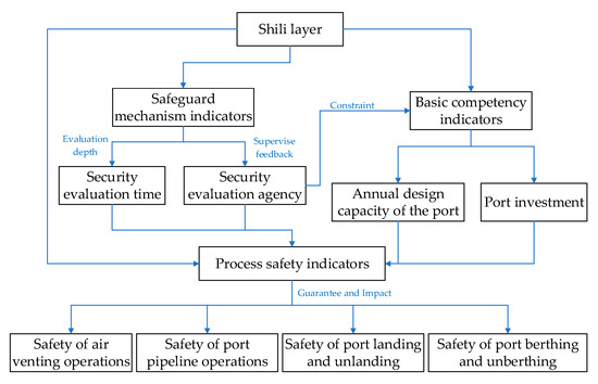 Based on the three-dimensional integrated perspective of the WSR methodology, the evaluation framework is constructed, as shown in Figure 2. Taking the Shili layer perspective as an example, the logical relationship between each indicator is shown in Figure 3.
