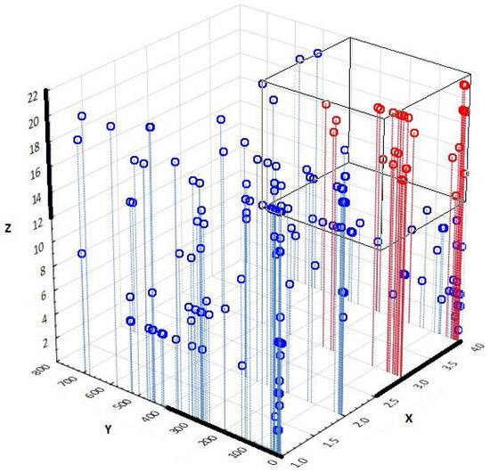 By putting individual customers (objects) that reflect the values of the selected segmentation criteria (X, Y, Z) (variables) into the 3D matrix, we create clusters. Referring to the theoretical model of the 3D matrix described above, it is possible to identify eight clusters consisting of different objects. Individual objects are more or less distant from each other in the 3D matrix. The distance of the single objects is given by the differences in the values of the selected variables.