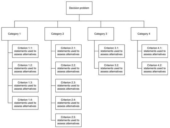 Secondly, we created a structured questionnaire that was distributed to municipal managers. In this structured questionnaire, we asked managers to rate the relative importance of each criterion and category. They were asked to make pairwise comparisons between the criteria in each category and pairwise comparisons between all four categories. Managers had to rate each comparison on a scale of one to nine, where one meant that both criteria were equally important; three meant that the first criterion was moderately more important than the second; five meant that the first criterion was significantly more important than the second; seven meant that the first criterion was very significantly more important than the second; and nine meant that the first criterion was extremely more important than the second. Managers used pairwise comparisons to prioritize the evaluation criteria. Manager participation was voluntary, respondents were informed of the purpose of our study, and anonymity and confidentiality were guaranteed so we did not influence their judgment in the pairwise comparison.