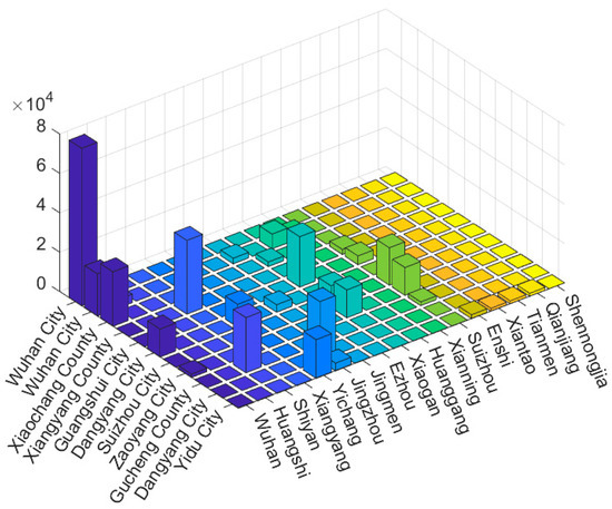 The same is shown in Table 14 for external rescue. Focusing on selecting the four affected cities with the highest degree of external dispatching for external rescue dispatching reflects the priority and focus of external rescue dispatching. Wuhan has the highest degree of external dispatching and the most serious disaster situation, and thus receives the most external rescue supplies; Xiaogan has a lower degree of external dispatching and a more serious disaster situation, and receives relatively fewer external rescue supplies. In addition, as can be seen in the epidemic internal emergency supply dispatching plan, Wuhan supply center (2) and Dangyang City supply center (1) undertook the task of dispatching supplies for five and four demand points, respectively, assuming important roles in this emergency supply dispatching process. It can provide a reference for the subsequent dispatching of supplies, personnel, vehicles and other reserve configurations from distribution centers.
