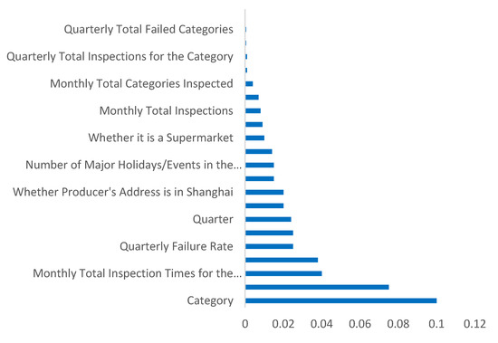 Category is the primary core feature for predicting the probability of noncompliance, essentially stemming from the inherent differences in natural risk thresholds among food categories. At the raw material level, edible agricultural products (vegetables, meat) are directly exposed to soil and water sources, inherently facing higher risks of pesticide residues and microbial contamination. At the process level, ready-to-eat foods (such as salads and cooked meat products) require multi-stage sterilization; production errors can lead to a surge in the risk of excessive microorganisms. At the supply chain level, imported foods go through multi-layer distribution, and the probability of cold chain breakdowns (or fluctuations in transportation temperature) is higher than that of local foods, amplifying the risk of spoilage. These chain-like differences constitute the underlying logic of category risks (for example, bee products, due to their breeding environment being prone to pesticide contamination, have a historical unqualified rate far exceeding the industry average). The high importance of the number of inspections—i.e., regulatory intensity—reflects the two-way interaction between risk and regulation. First, regulatory authorities conduct more inspections on historically high-risk categories, embodying the “passive high frequency” of high-risk categories. Thus, the “number of inspections” is not only a quantification of regulatory intensity but also implies a signal that “this category has been pre-judged as high-risk.” Second, high-frequency inspections themselves increase the problem detection rate, forming a positive cycle of “higher risk → more frequent inspections → more problems.” The right-skewed distribution in Figure 6 directly confirms this logic.