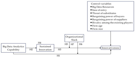 Moreover, previous research has demonstrated that data resources promote sustained innovation [20,21], and that sustained innovation contributes to innovativeness [22]. However, it remains unclear whether sustained innovation can serve as a bridge between BDAC and innovativeness. Additionally, achieving innovativeness may not only requires BDAC, it also depends on the coordinated action of other internal factors [23,24]. In particular, organizational slack serves as a critical internal resource for firms and is essential to facilitating innovation driven by technological progress [25]. Nonetheless, current research remains inconsistent on the role of organizational slack in innovation [26,27,28]. Therefore, the following questions are posed: