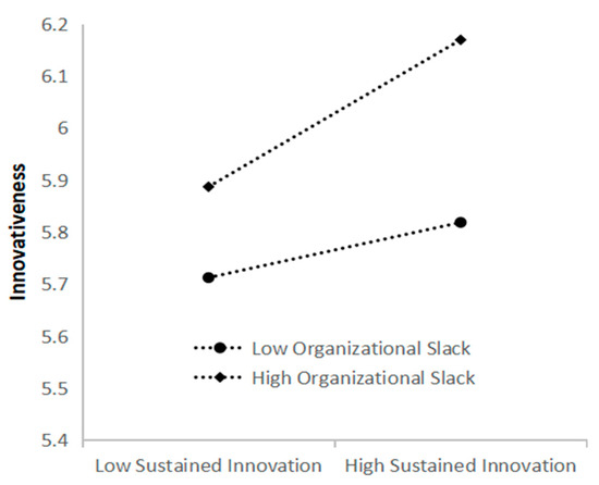 Organizational slack positively moderates the relationship between sustained innovation and firm innovativeness.