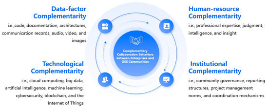 45]. Drawing on existing theories and practices, this study posits that complementary collaboration behaviors between enterprises and open-source software (OSS) communities primarily focus on four areas (