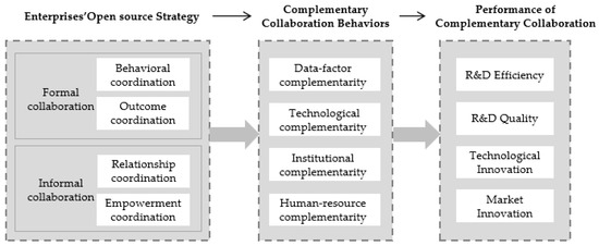 42]. When a physical enterprise collaborates with a virtual open-source community, relationship coordination may shape their complementary collaboration in several ways: (1) through building trust. By maintaining transparency in the collaboration process and sharing information openly, an enterprise can strengthen and sustain its trust-based relationship with an open-source community, thereby increasing community participation and contributions. (2) By promoting open communication, information can be promptly circulated between the enterprise and the open-source community, thereby enhancing project coordination efficiency. (3) By reinforcing cooperative commitment: through ongoing resource input and support—including, but not limited to, technical and human resources—the enterprise demonstrates its long-term dedication to open-source community collaboration.