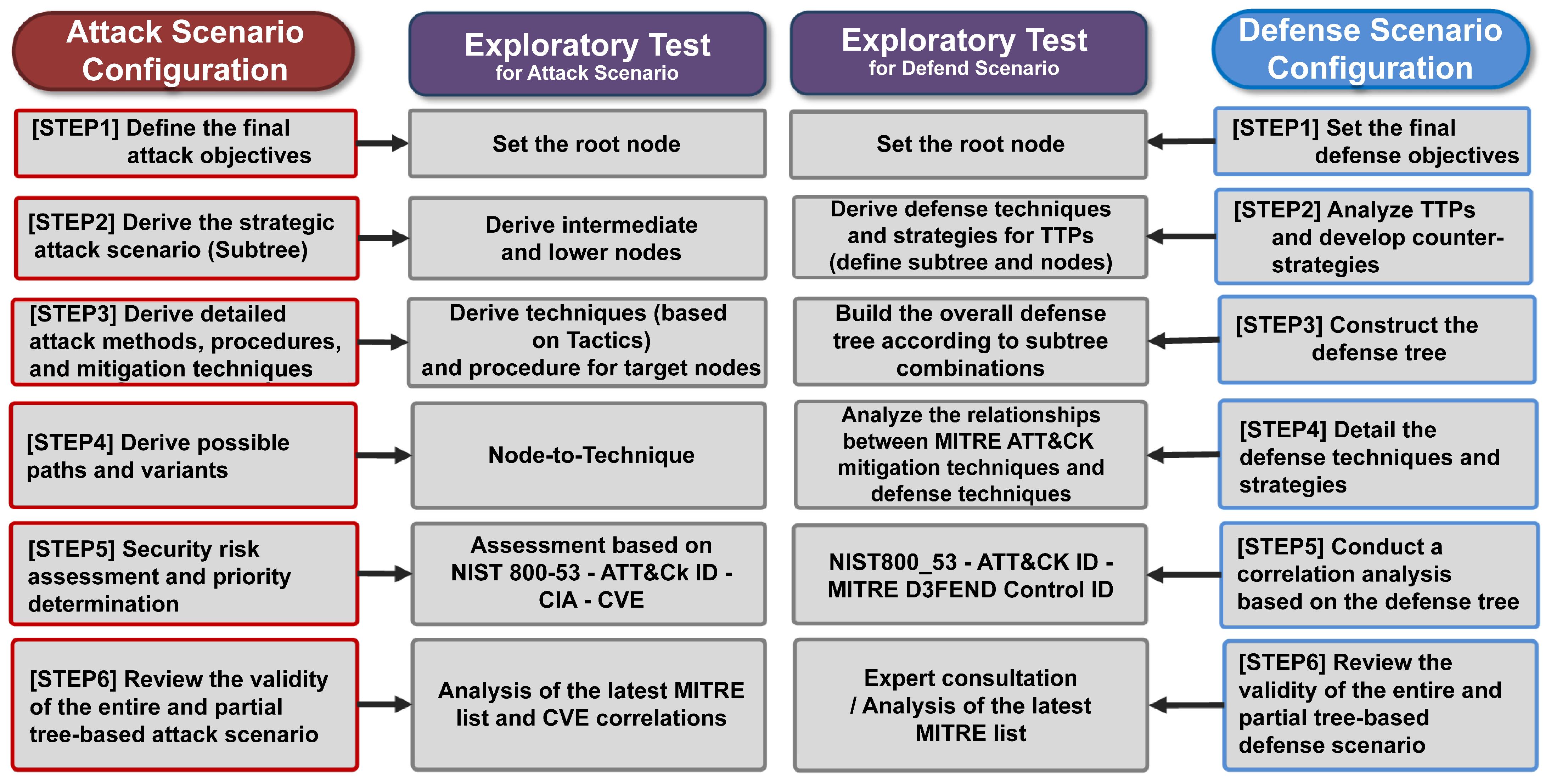 - Attack and defense scenarios were constructed with clearly defined objectives and procedures, and their validity was verified through alignment with the MITRE ATT&CK and D3FEND frameworks as well as the NIST SP 800-53 security controls.
