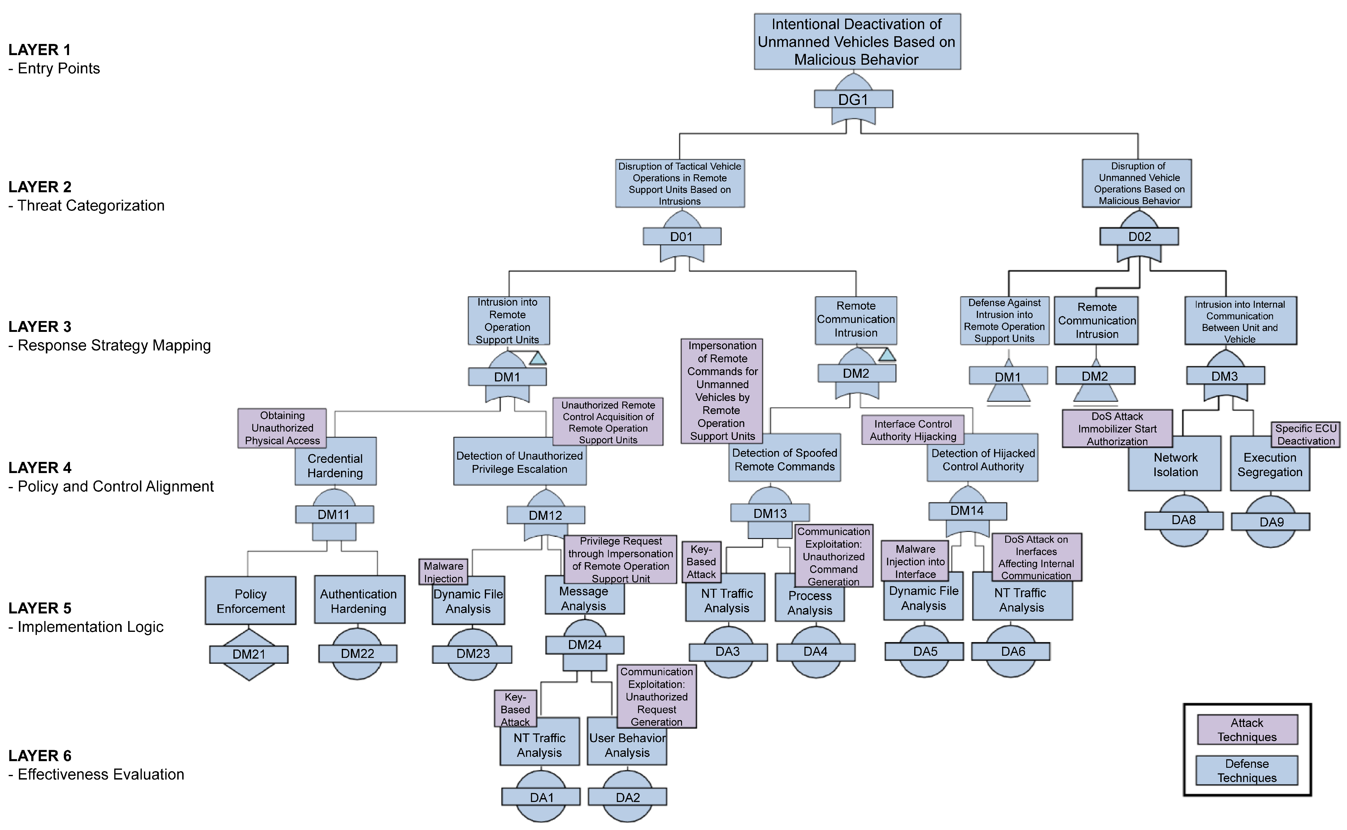 - The case study confirmed that realistic threat identification and the establishment of defense strategies for unmanned vehicle components are achievable through the application of the MITRE ATT&CK and D3FEND frameworks.
