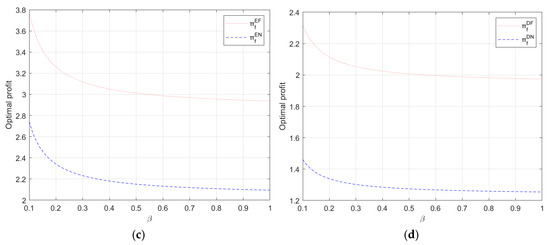(ii) For comparing the shipping company’s profit, we have . Here , , and . Thus, its functional value is always greater than zero, and then . Subsequently, summarizing the above results, Proposition 1(c) (ii) is proved. □