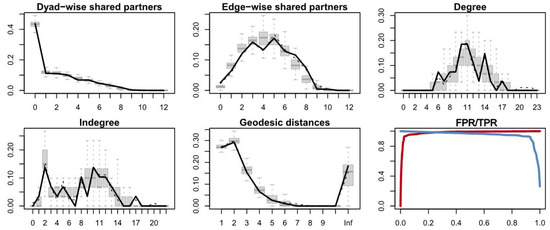 Goodness-of-fit plots. Note: edge-wise and dyad-wise in the figure correspond to the standard terminology edge-wise and dyad-wise.