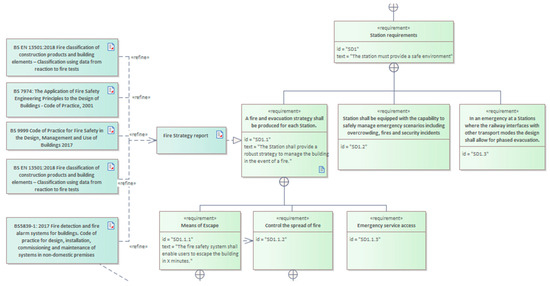 Following the methodology outlined in the author’s previous work [107], environmental, data management, and contractual document representations were selected as initial seed artefacts. They were used to generate a set of 20 SQL queries within the EDMS that identified interdependencies based on the references and database metadata. Graph theory analysis using degree centrality and betweenness centrality was used to rank artefact complexity. These queries identified the fire safety system of a railway station for the HS2 project as highly interlinked based on the metrics attained from the document relationships. While other documents scored higher, they were discounted during data validation workshops with system owners and discipline leads due to artefact suitability. The selected system included a range of elements applicable to spatial configuration, safety strategies, and regulatory mapping.