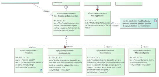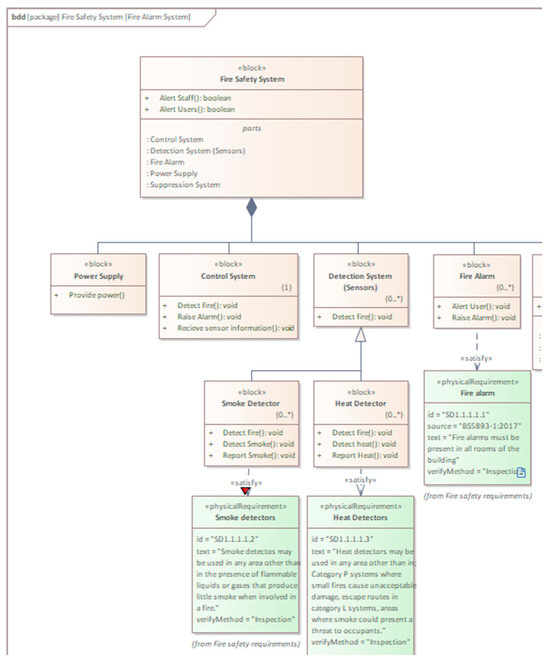 - Systems architecture and decomposition: Block diagrams were used to represent the systems and their sub-systems (e.g., detectors, alarms, sprinkler systems, etc.) and their interactions.