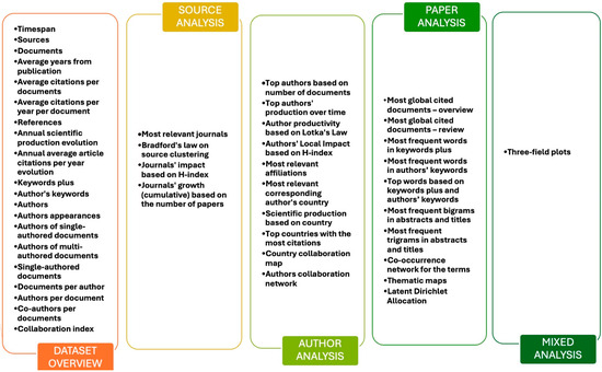 Figure 3 presents the bibliometric analysis facets, together with all the analyses conducted in each section.