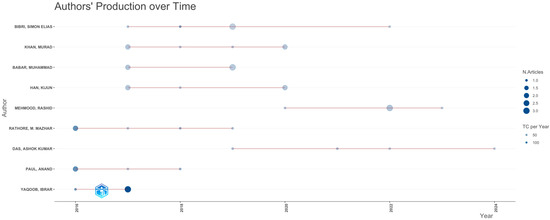 The next component focuses on the authors and their productivity over selected years. Collaborations between them and institutional affiliations will also be analyzed.