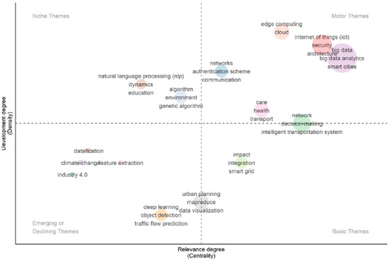 Being one of the core concepts in the digital area [5], big data has attracted the interest of numerous academics. Gandomi and Haider [6] discussed big data in their manuscript and defined it as a term that describes large volumes of high velocity, complex, and variable data, which requires advanced computational power to analyze the information. “High velocity” refers to the speed at which data is transmitted and must be processed, whereas “complex” refers to how difficult it is to model the data, and the “variable” term suggests the diversity of data types. The implementation of this concept in smart cities has become imperative, as current hardware technology would not cope with the entire volume of data.