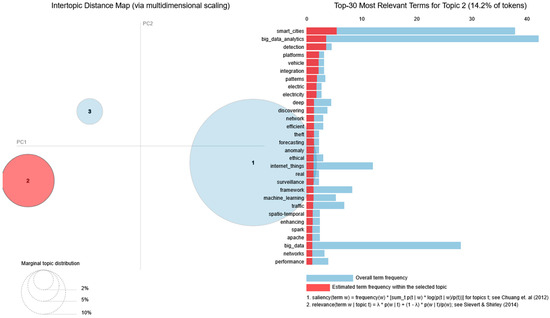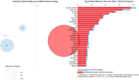 In order to achieve a good balance between a relatively small number of clusters and a good coherence of the topics, a grid search approach has been used, varying the number of clusters (between 3 and 6), as well as the alpha (0.01, 0.1, 1.0, ‘symmetric’, ‘asymmetric’) and eta (0.01, 0.1, 1.0, ‘symmetric’, ‘auto’) hyperparameters. The best results have been achieved when setting the number of clusters to 3, alpha to ‘asymmetric’ and eta to 1. Moreover, the LDA analysis has been further supplemented by the BERTopic approach. This method constructs coherent topic representations using a class-based variant of TF–IDF and has a proven competitive performance across several topic modelling benchmarks [71]. To improve topic detection accuracy, the text data was first pre-processed by converting all words to lowercase and removing punctuation. Next, the minimum cluster size and the minimum samples parameter of the HDBSCAN algorithm were iteratively fine-tuned to maintain an appropriate balance between granularity and interpretability [42]. The results of the BERTopic analysis have been further put in connection with the ones obtained in the case of LDA for supporting the topics identified in the selected dataset.