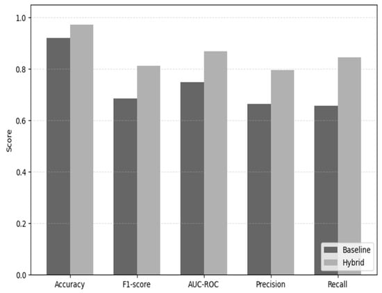Figure 1 visualizes these performance metrics, clearly illustrating that the hybrid model outperforms the baseline across all key metrics.