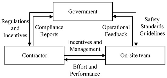 A growing body of literature shows that the slow adoption of construction technologies arises not only from technical readiness issues but also from incentives and behavioral constraints that steer adoption choices. In the case of HRC systems, the principal barrier is weak incentive design coupled with inadequate enforcement mechanisms. For example, the core issue impeding the widespread application of HRC systems in construction lies in the insufficiency of incentive mechanisms and the lack of effective constraint mechanisms [9,10]. Although the government can introduce several incentive policies, such as financial subsidies and tax incentives, these measures cannot fully mobilize the enthusiasm for technological adoption by construction enterprises, especially small and medium-sized enterprises (SMEs) [11]. High technological transformation costs, uncertain short-term returns, and information asymmetry have led many companies to delay adoption or engage superficially [12]. Furthermore, the low participation of on-site teams in the technology application process and the absence of effective incentive mechanisms for them result in the practical application effects of the technology falling far short of expectations [13]. Therefore, how to motivate the government, contractors, and on-site teams through reasonable incentives and constraint mechanisms to promote technological adoption and ensure cooperation has become a key issue for the intelligent transformation of the construction industry.