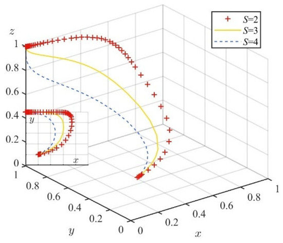 When and , it follows that , , and the equilibrium is stable, meaning that the government tends to choose rigid supervision. When and , it follows that and , and the equilibrium is stable, meaning that the government tends to choose flexible supervision. Similarly, when the influence of the on-site team is used to judge the government’s decision, the corresponding conclusion can be obtained, thus proving Proposition 1. □