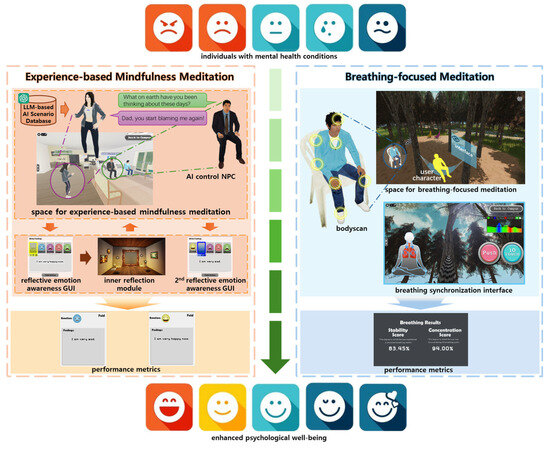 In recent years, the prevalence of mental health disorders has continued to rise, becoming a major global public health concern. According to a recent large-scale study involving over 150,000 people across 29 countries, approximately 50% of the global population is expected to experience at least one mental illness by the age of 75 [1]. Although pharmacological and psychotherapeutic treatments remain foundational, they are often limited by side effects, adherence challenges, cost, and accessibility barriers [2,3,4]. This highlights the urgent need for scalable, non-pharmacological interventions that empower individuals to develop emotional regulation and stress management skills for everyday life.