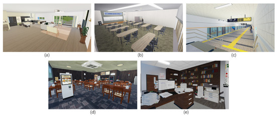 Space of user immersion induction module: (a) home; (b) interview room; (c) subway; (d) restaurant; and (e) office.