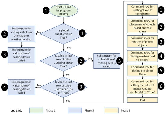 The second key result relates to the self-building capabilities of the simulation model. Our assumption about the data needed for simulation model creation and simulation running proved to be correct. If any of the specified data was missing, either the simulation model could not be built or the simulation would not run correctly. Following the execution of Algorithms 1 and 2, the outcome of one use case is illustrated in Figure 14a.