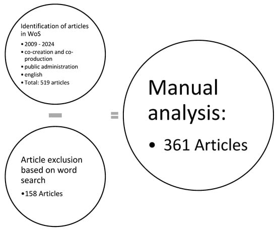 Limiting the search to the category of public administration corresponds to the research question, which focuses on operationalizing the drivers and barriers of co-creation specifically in public organizations. This approach ensures that the resulting decision model is grounded in the organizational realities of the public sector while maintaining methodological rigor. Although this approach focuses specifically on the context of public administration to ensure relevance to the assessment of organizational readiness in public organizations, we acknowledge that insights from other disciplines could complement the framework, but these were beyond the scope of the present study.