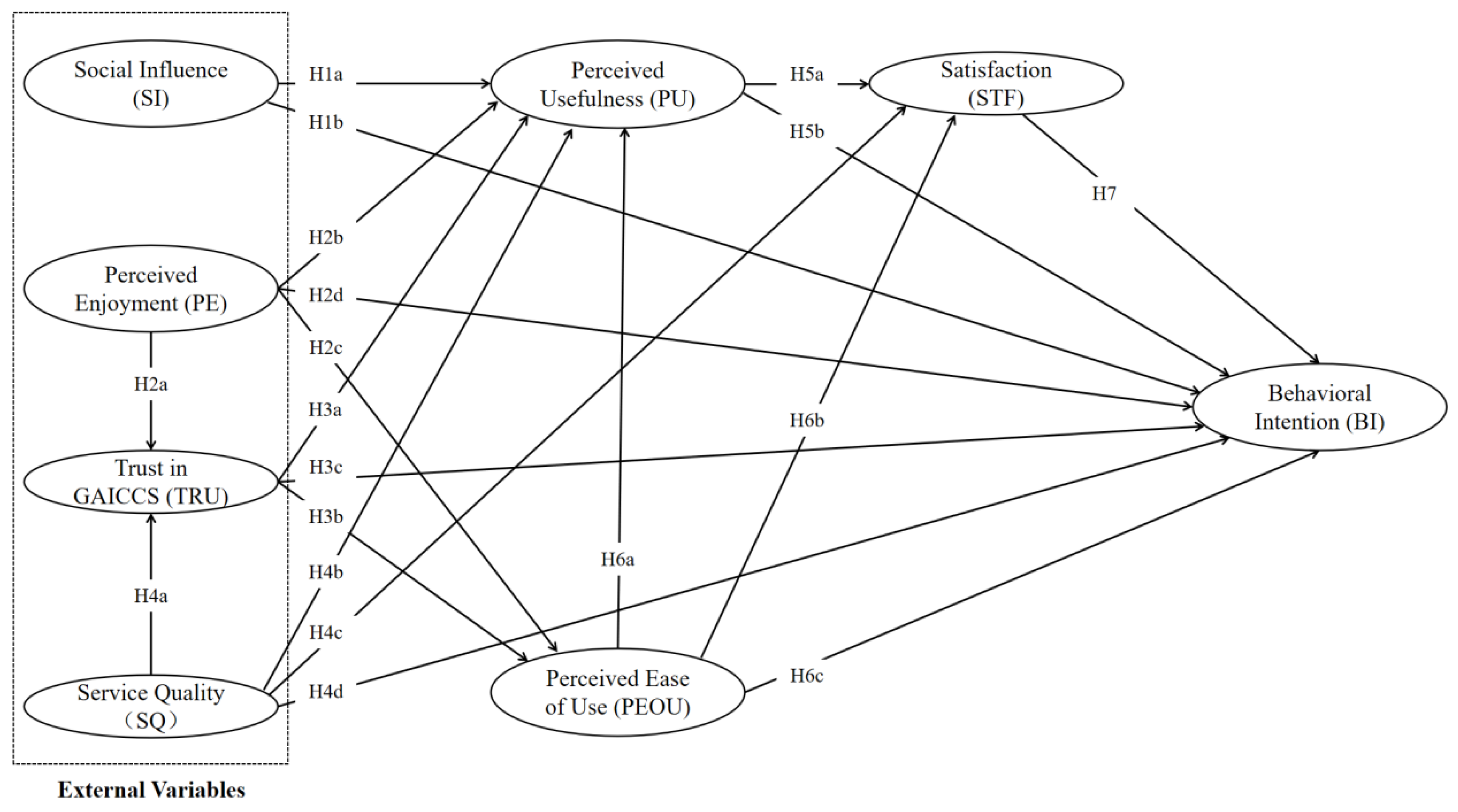 PE | BI | PEOU | PU | SI | SQ | STF | TRU | |