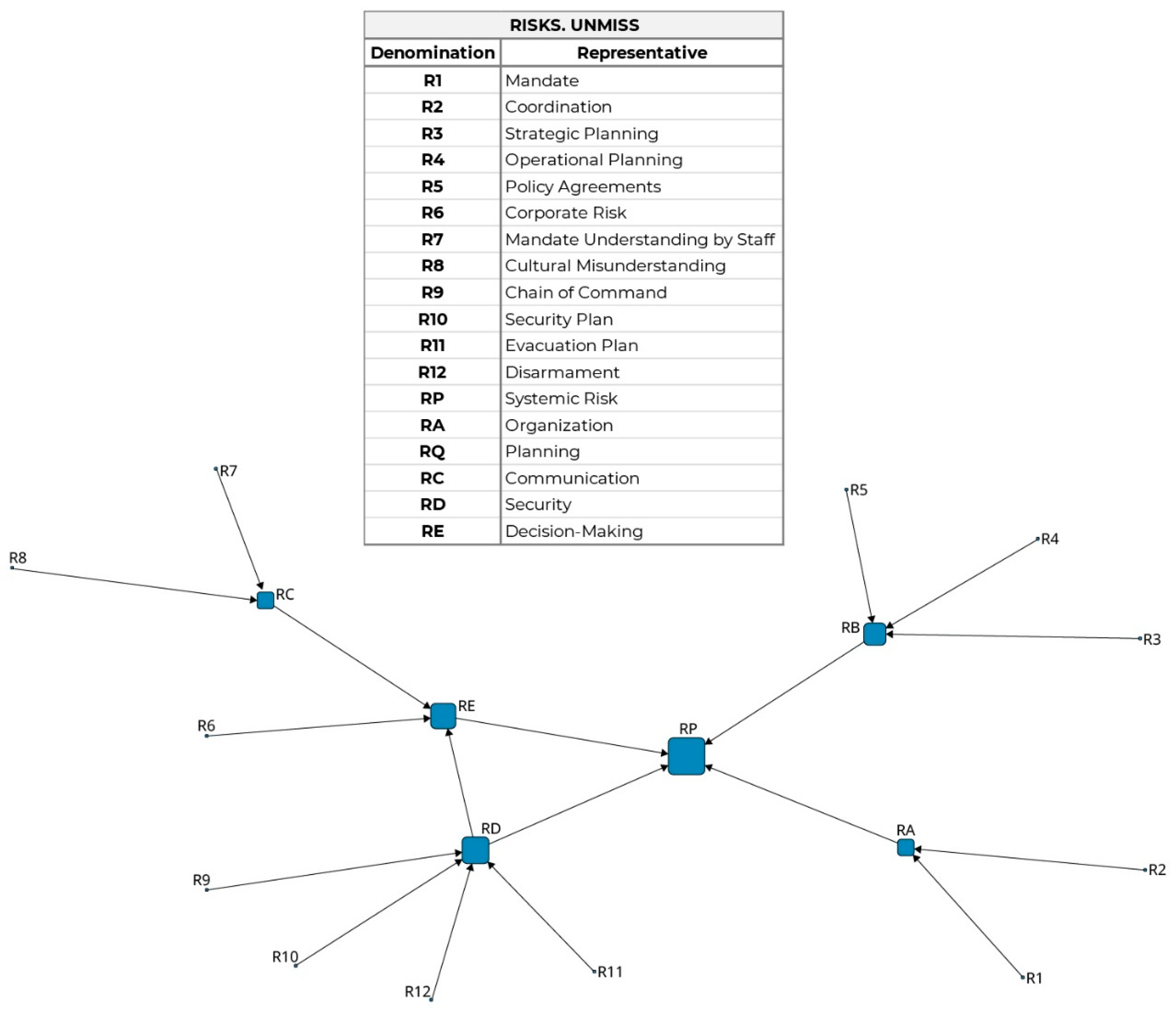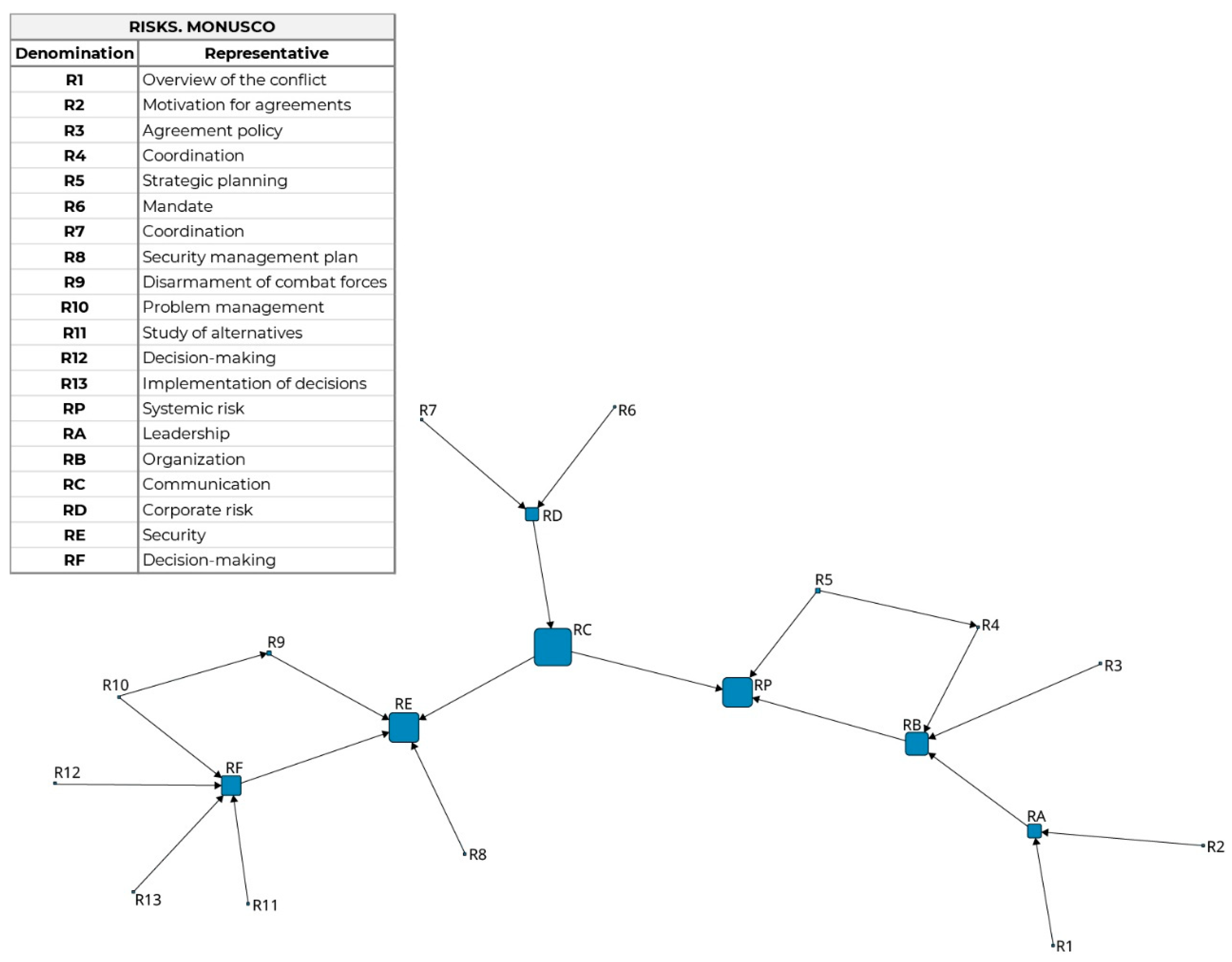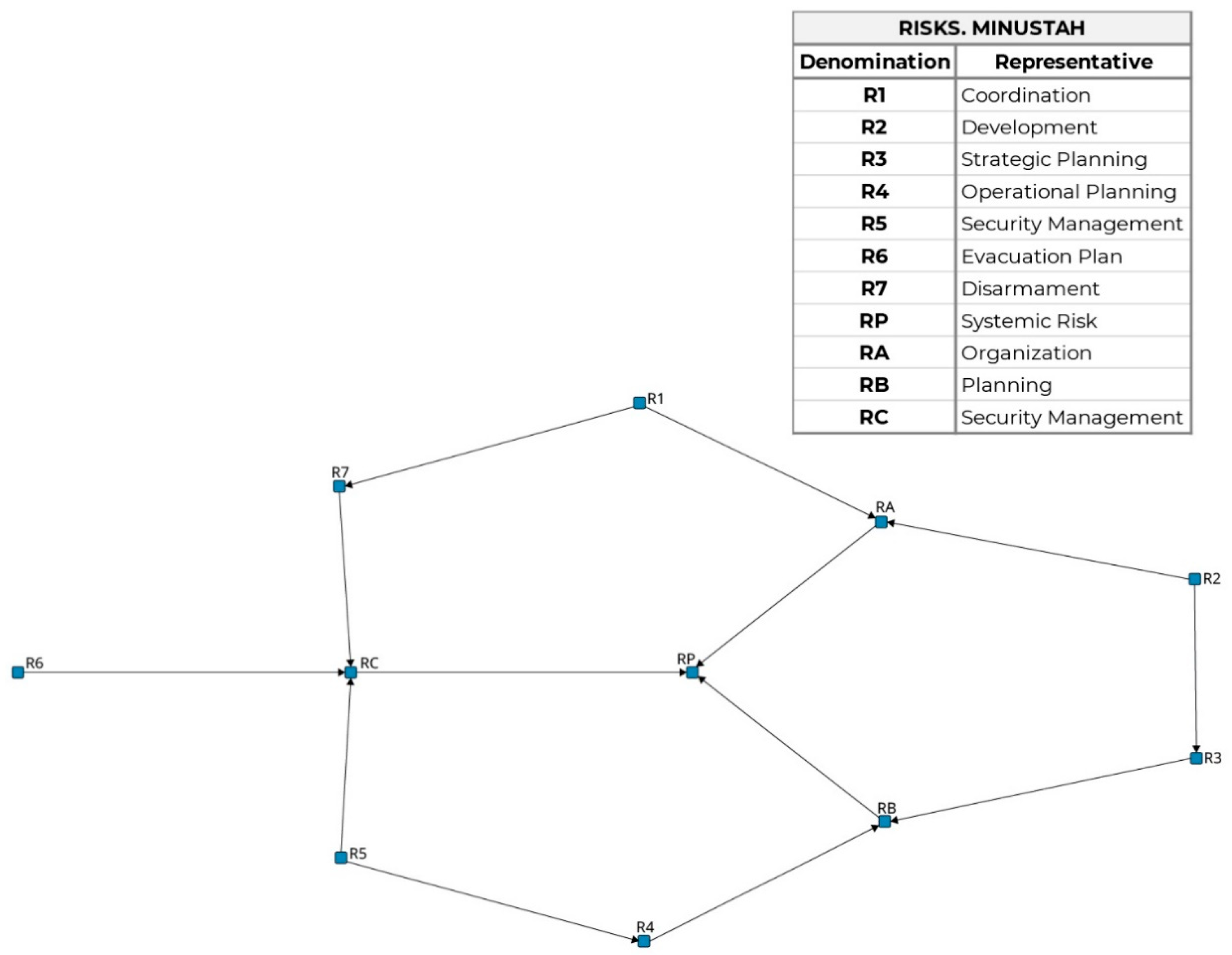 - Build the stakeholder and risk networks associated with each mission. This involves analyzing the management approach, identifying and mapping conflict stakeholders from the sources consulted in each case study, constructing the network of relationships among actors, and calculating betweenness centrality using UCINET software to determine structural complexity. The same procedure is then applied to the risk network to obtain structural and dynamic risk metrics.
