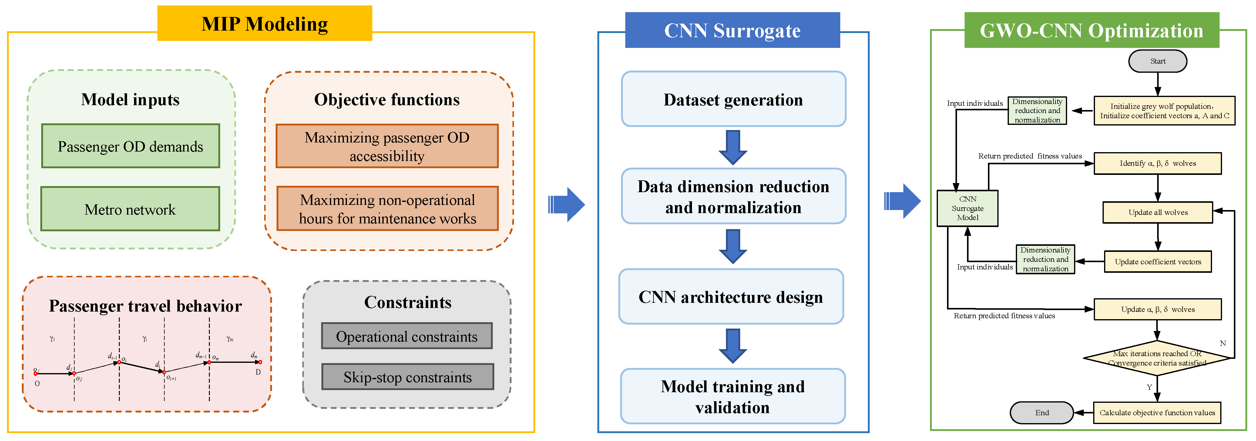 Chicago/Turabian StyleWang, Zhiwei, Shanqing Hu, Zilu Chen, Xuan Li, Zhaodong Huang, and Hanchuan Pan. 2026. "Coordinated Optimization of Late-Night Metro Timetables with Selective Skip-Stop Strategy: A Hybrid GWO-CNN Approach Balancing OD Accessibility and Maintenance Needs" Systems 14, no. 1: 11. https://doi.org/10.3390/systems14010011