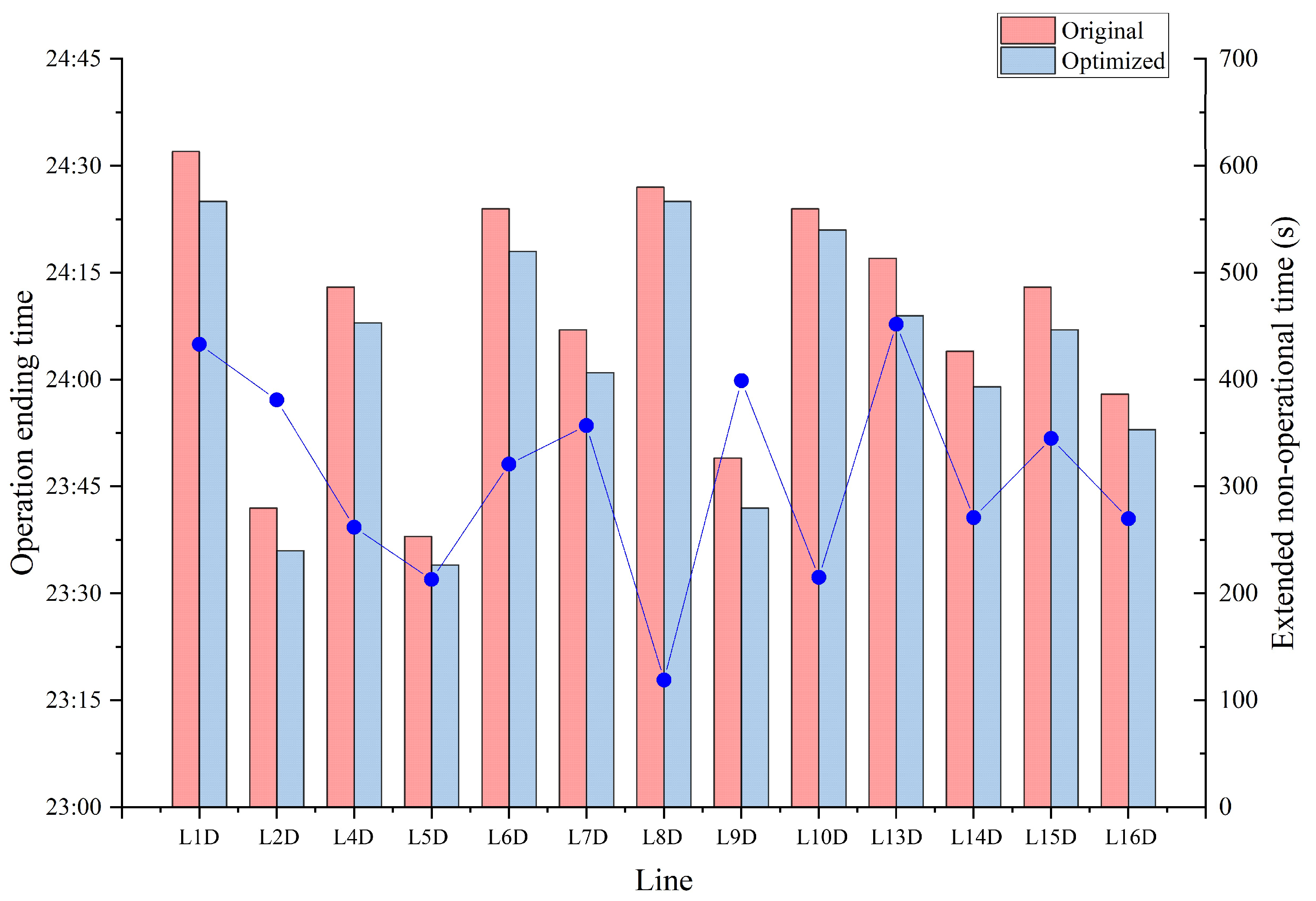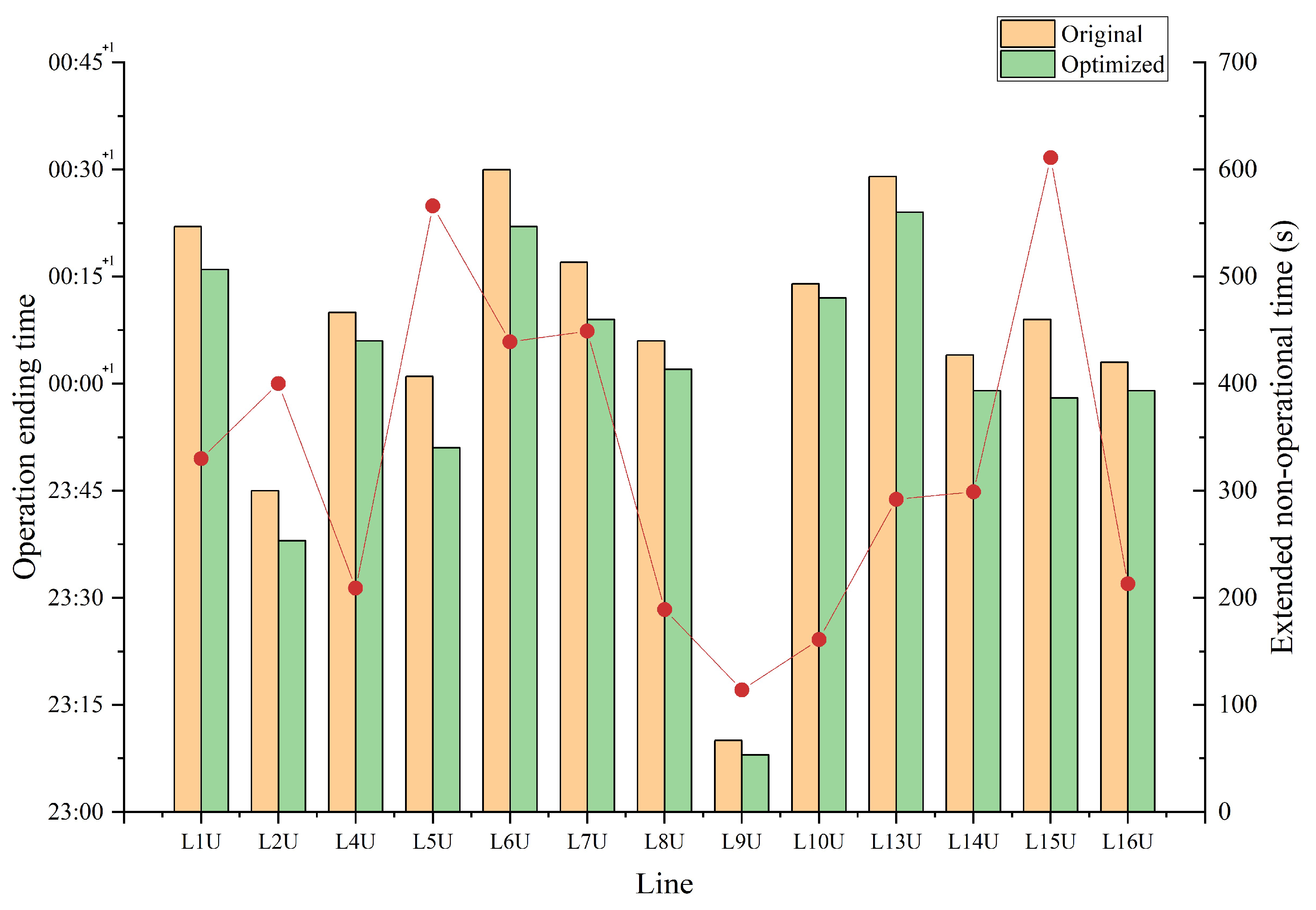 - Zhou, F.; Wang, W.; Wang, F.; Xu, R. Operation extension strategy on last train timetables in urban rail transit network: A Pareto optimality-based approach. Transportation 2025, 52, 2007–2026. [Google Scholar] [CrossRef]