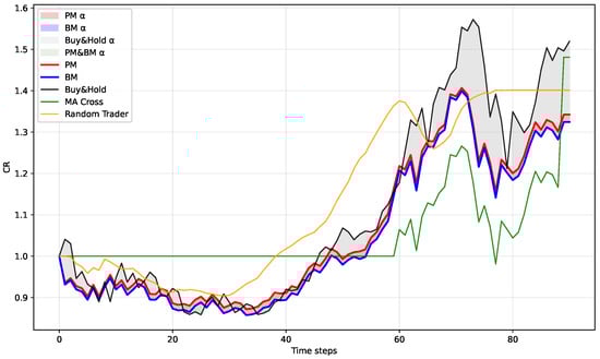 Methodologically, to ensure that our empirical findings from simulation-based trading are statistically credible, this study follows best practices identified in the backtesting and systematic trading literature. The design remains alert to selection bias and overfitting in repeated simulations [28]. Accordingly, look-ahead bias is mitigated by executing trades at the next day’s open [29], results are reported as averages over repeated experiments across quarters and independent seeds [30], and multiple benchmarks, including Buy-and-Hold, MA Crossover, and Random Trader, are employed to contextualize RL performance [31,32,33].