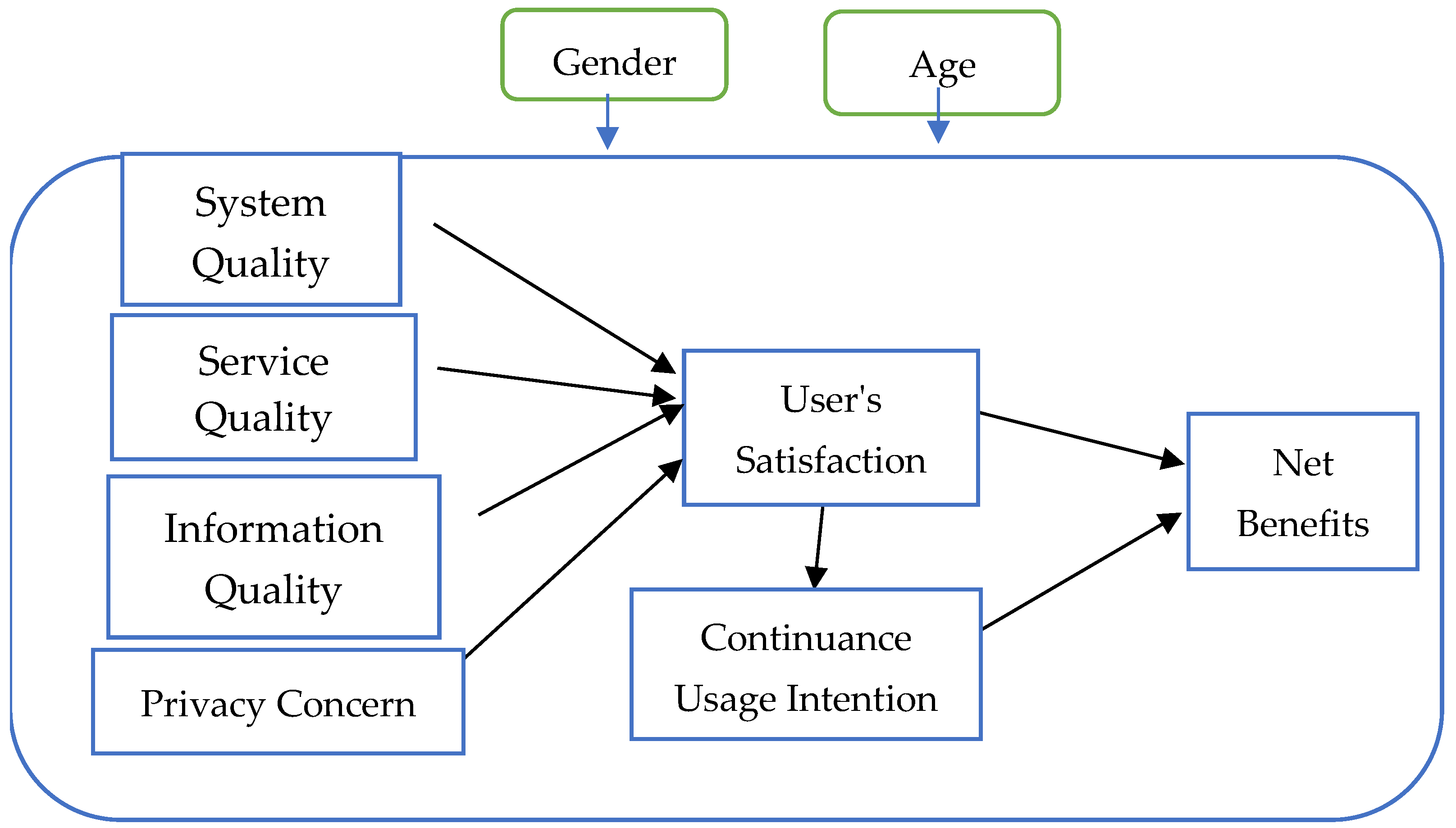 - Gelderman, M. The relation between user satisfaction, usage of information systems and performance. Inf. Manag. 1998, 34, 11–18. [Google Scholar] [CrossRef]