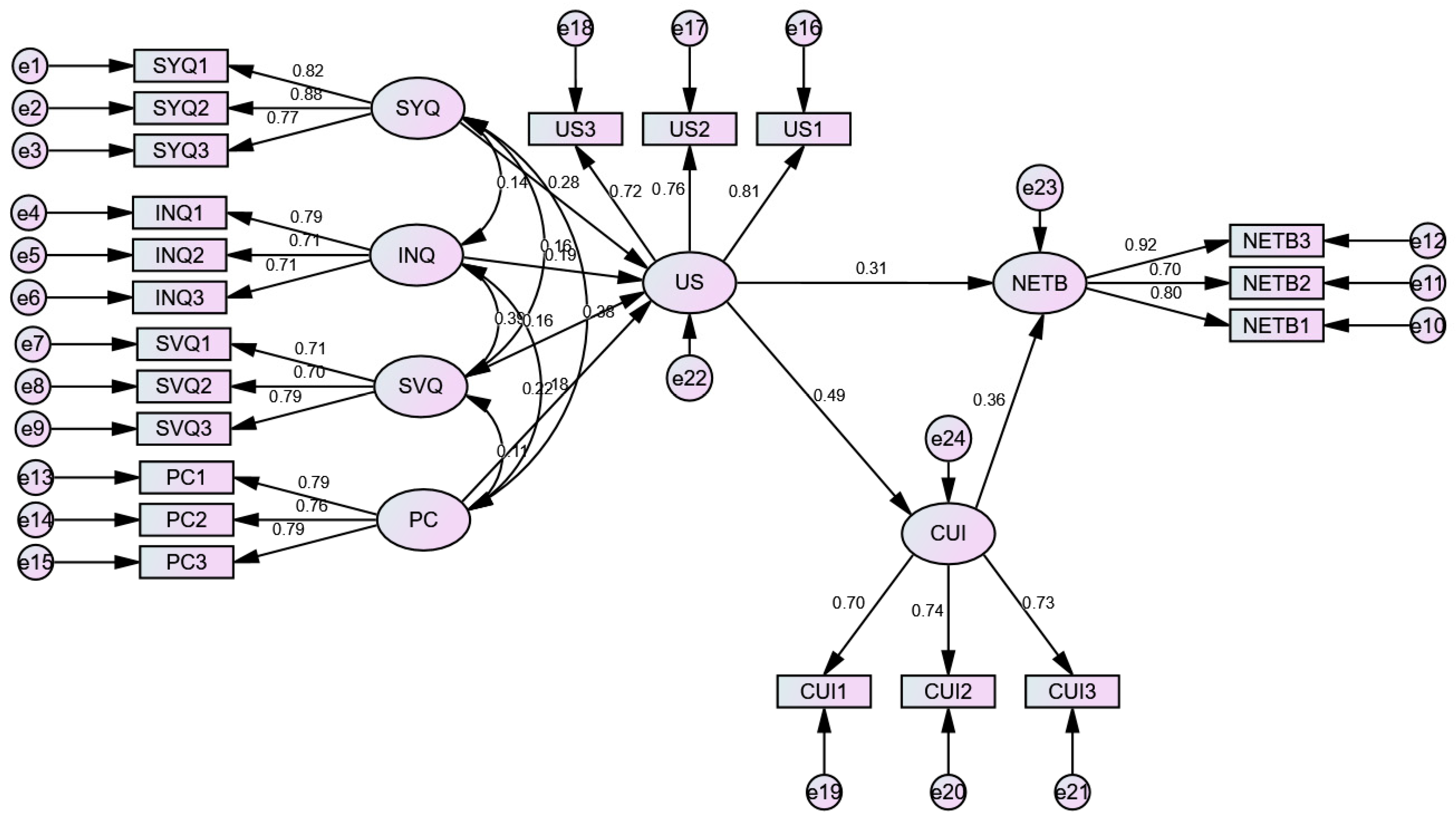 | NETB <--- CUI | 0.475 | 0.365 | 6.063 | *** | Positive and significant effect |