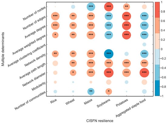 To explore the complex mechanisms shaping the resilience of CISFN, this section employs multiple statistical methods, including the Pearson correlation coefficient and multivariate regression analysis. These methods comprehensively evaluate how various structural and systemic drivers influence network resilience.