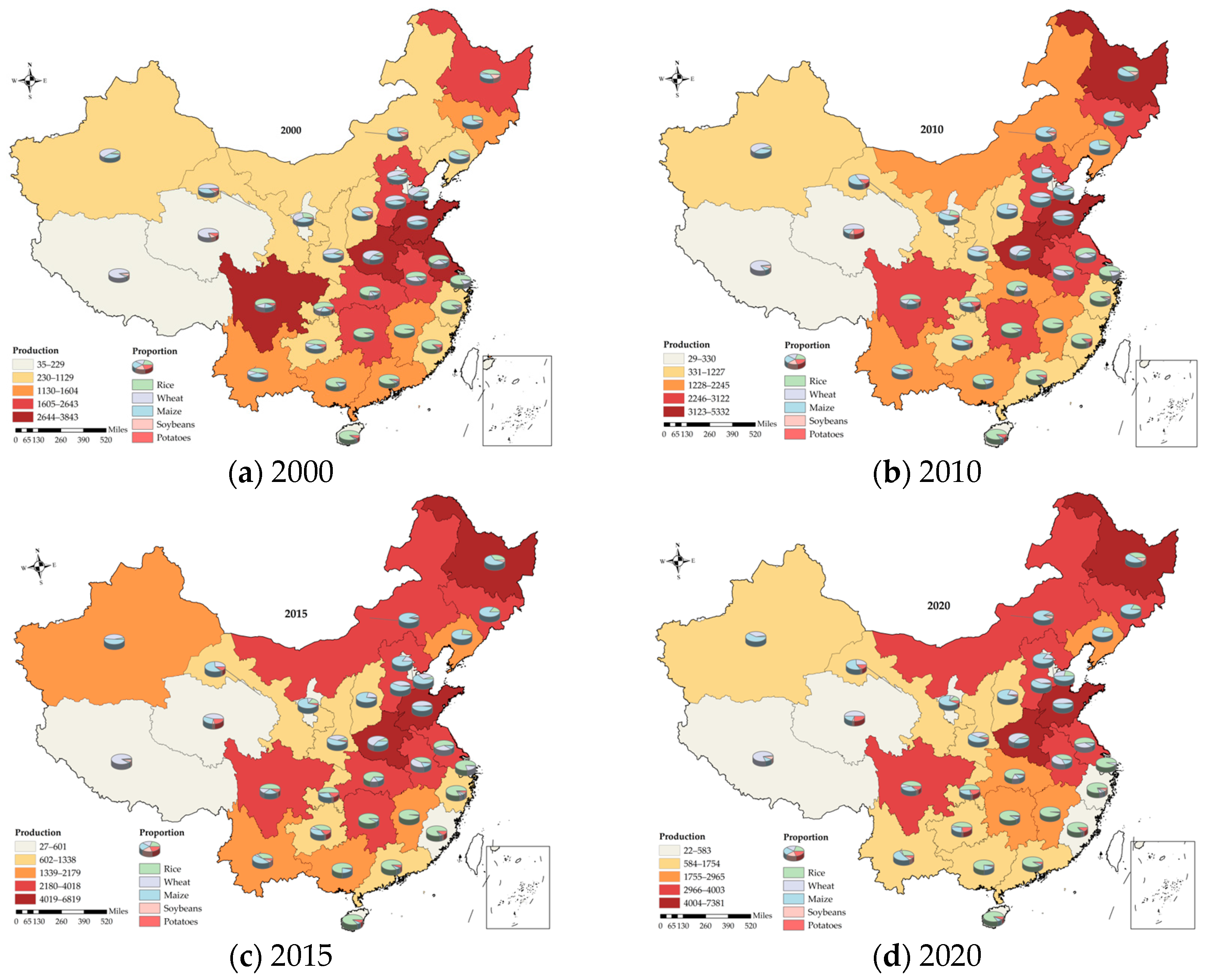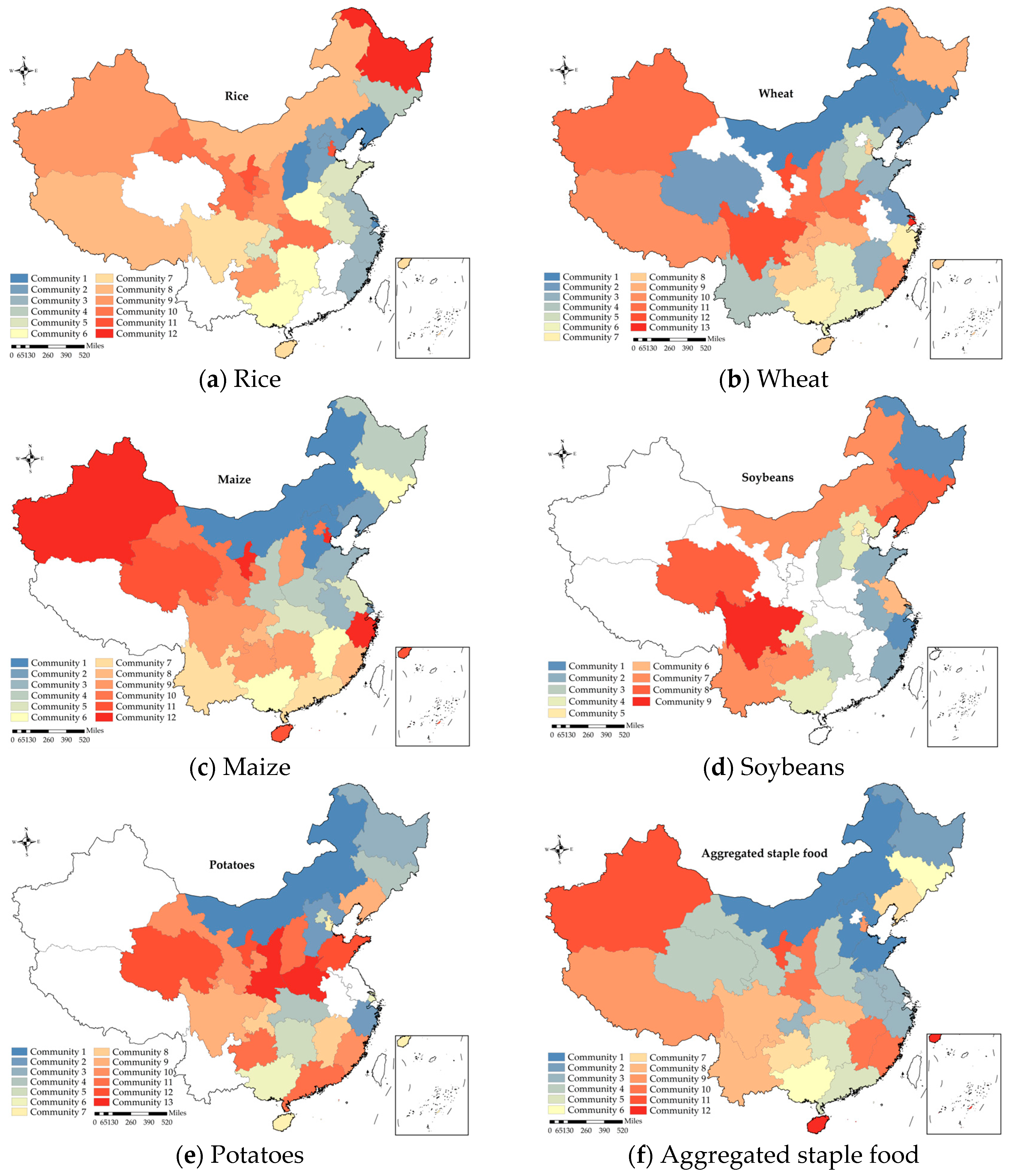 The comparative analysis across staple foods reveals pronounced regional patterns and spatial heterogeneity. Combined with