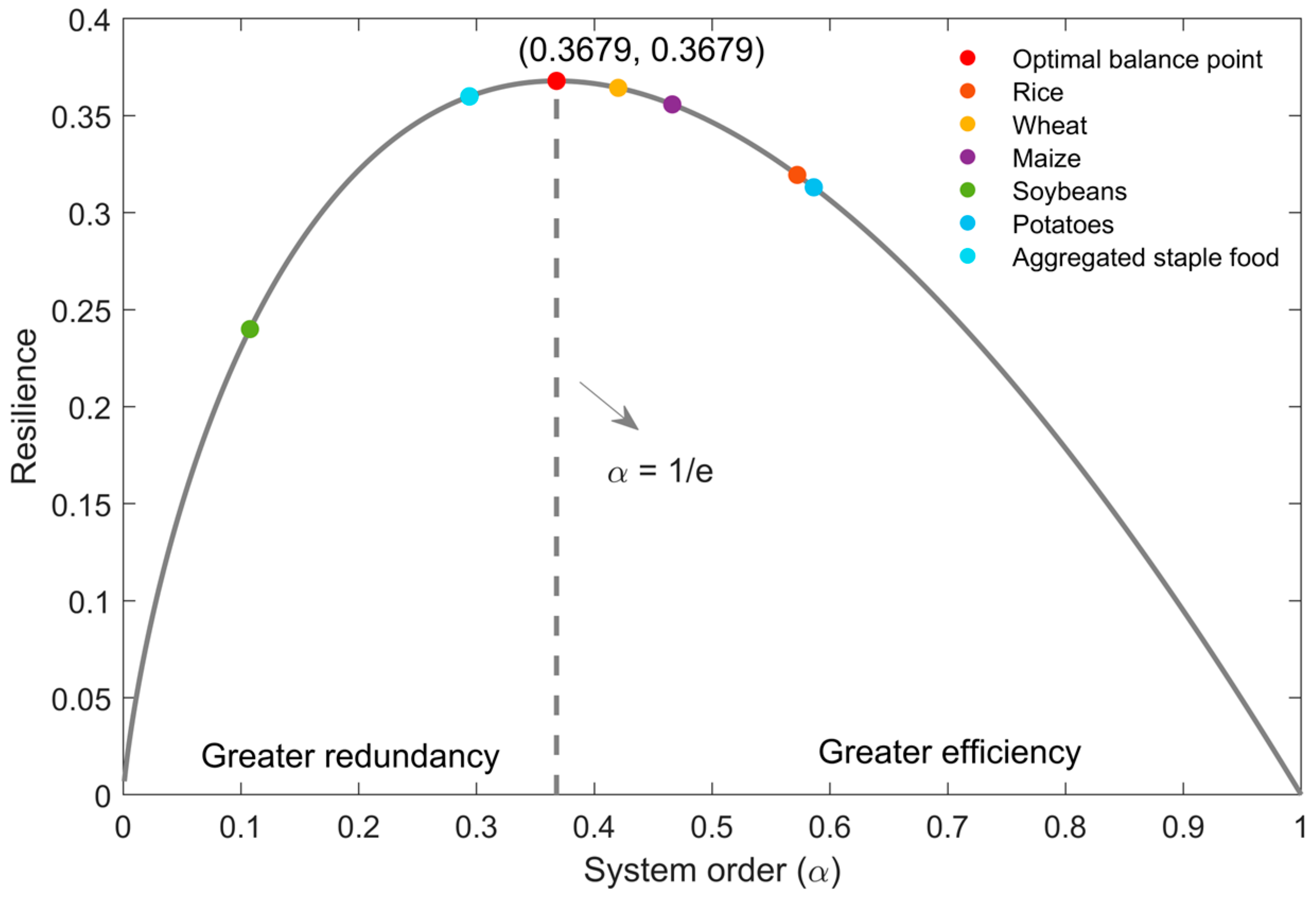 In this study, resilience is defined as the system’s capacity to resist, adapt to, and recover from external shocks, with its optimal state characterized by a balanced relationship between efficiency and redundancy [