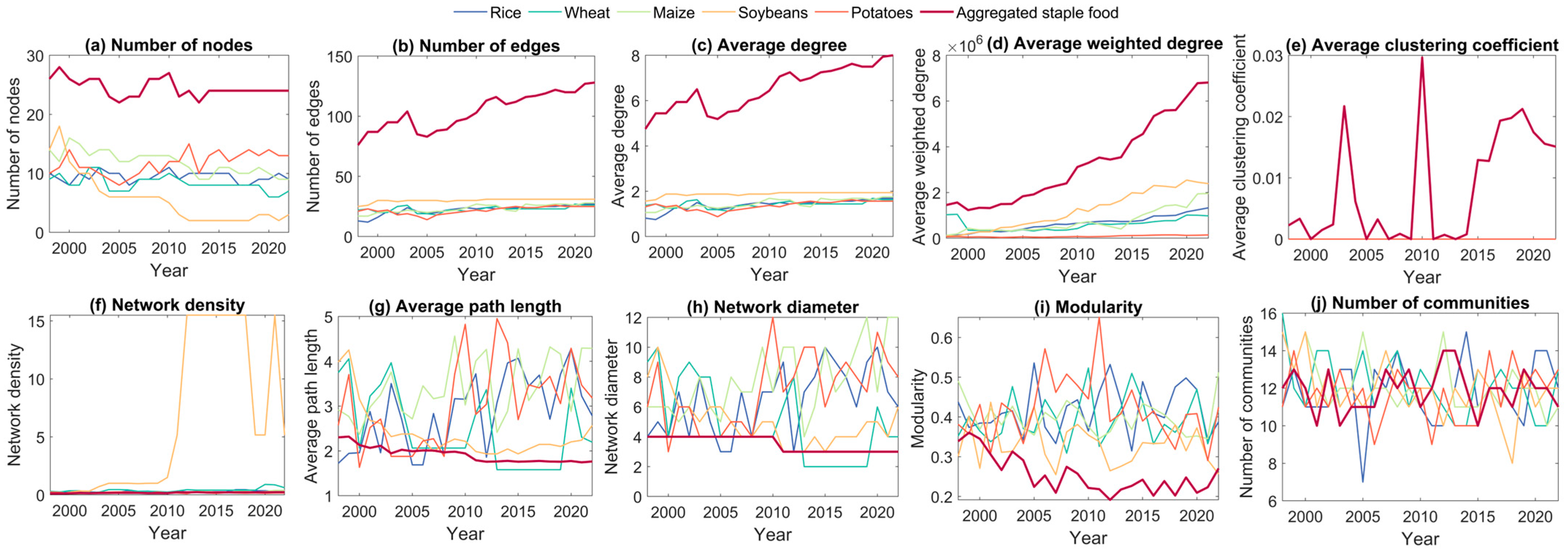There are several limitations to this study. First, the evolving dynamics of global climate change and international food trade highlight the need to incorporate more detailed international trade information. Second, due to data availability, this study relies on annual data at the provincial scale. A monthly, city-level representation of staple food flows would enable a more precise assessment of resilience characteristics. Third, the estimation of inter-provincial food flows is based on static transportation cost data, which may not fully capture real-world variability.